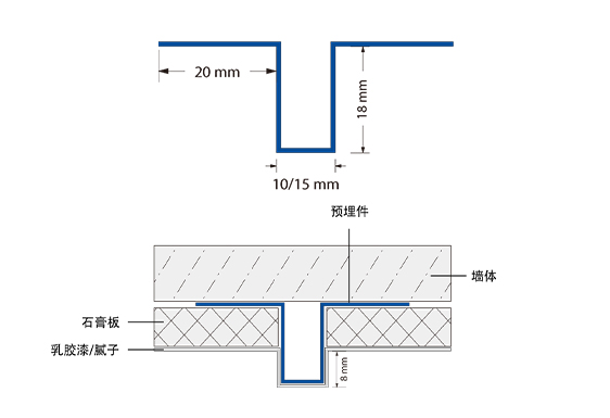 和石膏板同步安装,凸型顶线表层凸出漆膜水平面,高标准直线度。施工简易。