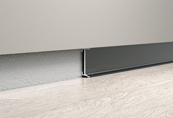 无钩边的内嵌式脚线,适用于墙面偏硬质的主材覆盖材料,如瓷砖、硬包等。与地面接触加长的缝隙遮蔽脚边,解决地板与墙体之间的预留伸缩缝,带配套转角件。